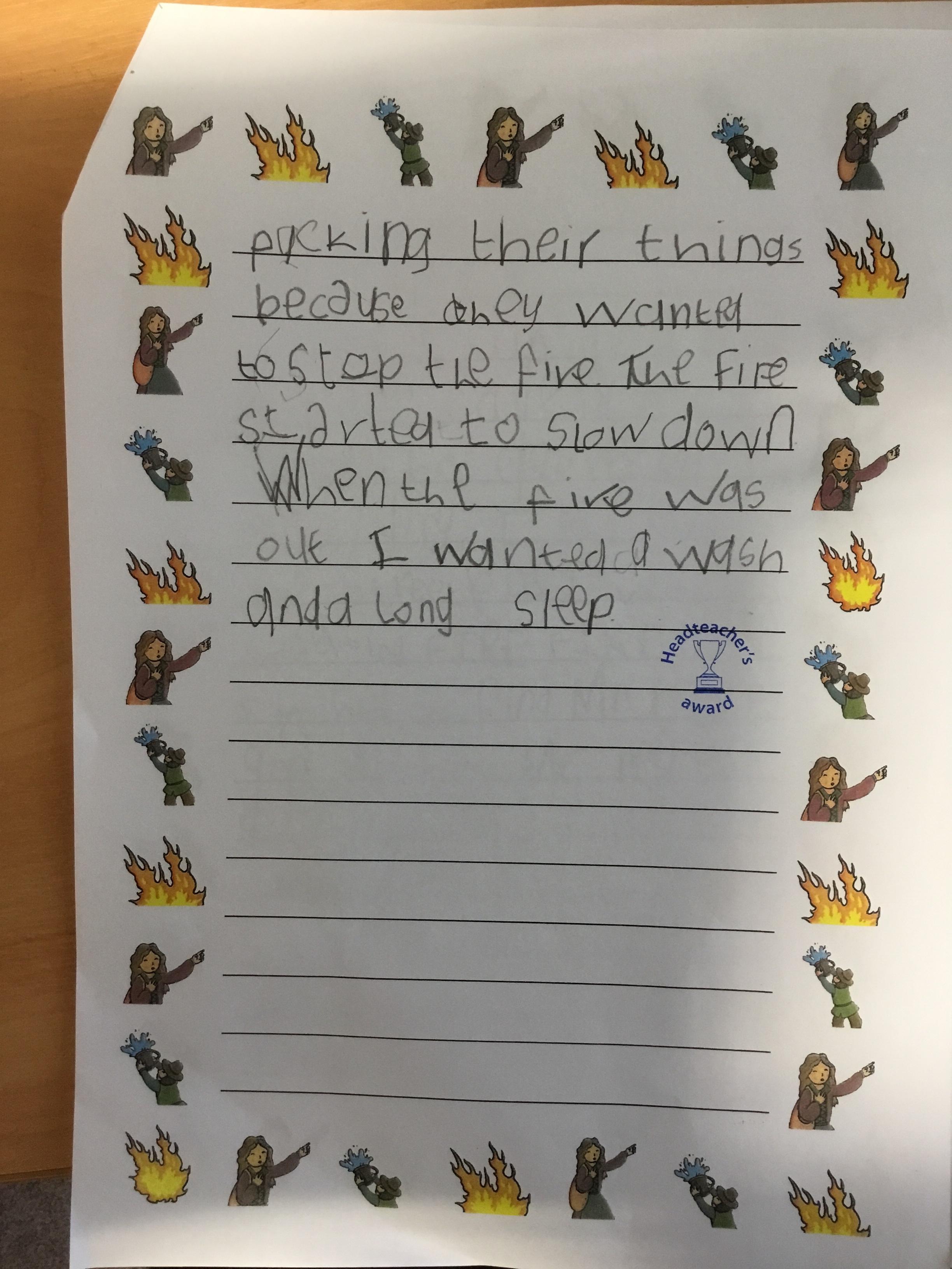 Freddie’s fantastic Great Fire of London writing - 30th January