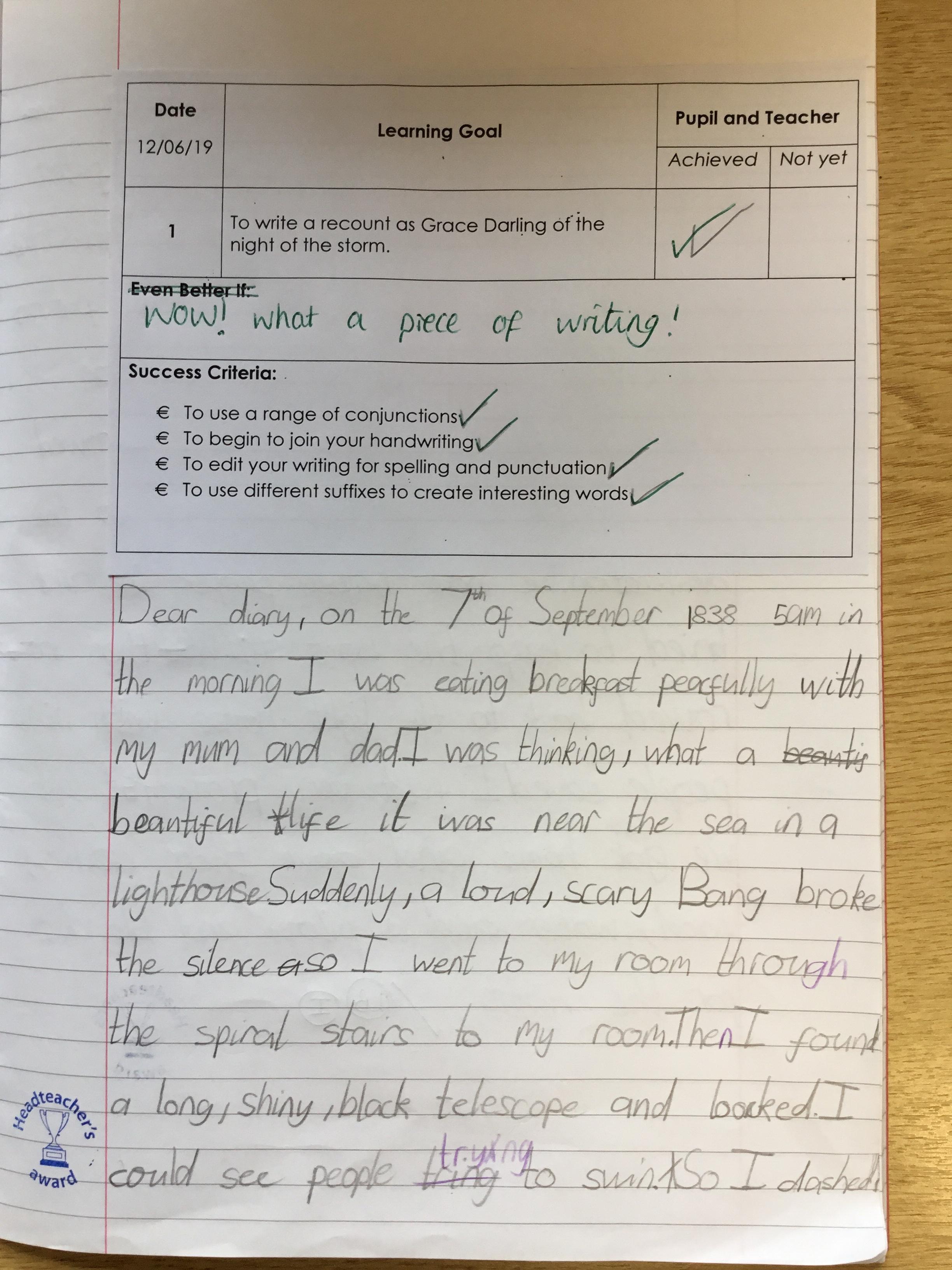 Maria’s outstanding writing - 13th June