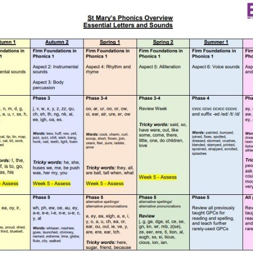 This programme follows six phases of learning which runs from Nursery into Year 2.