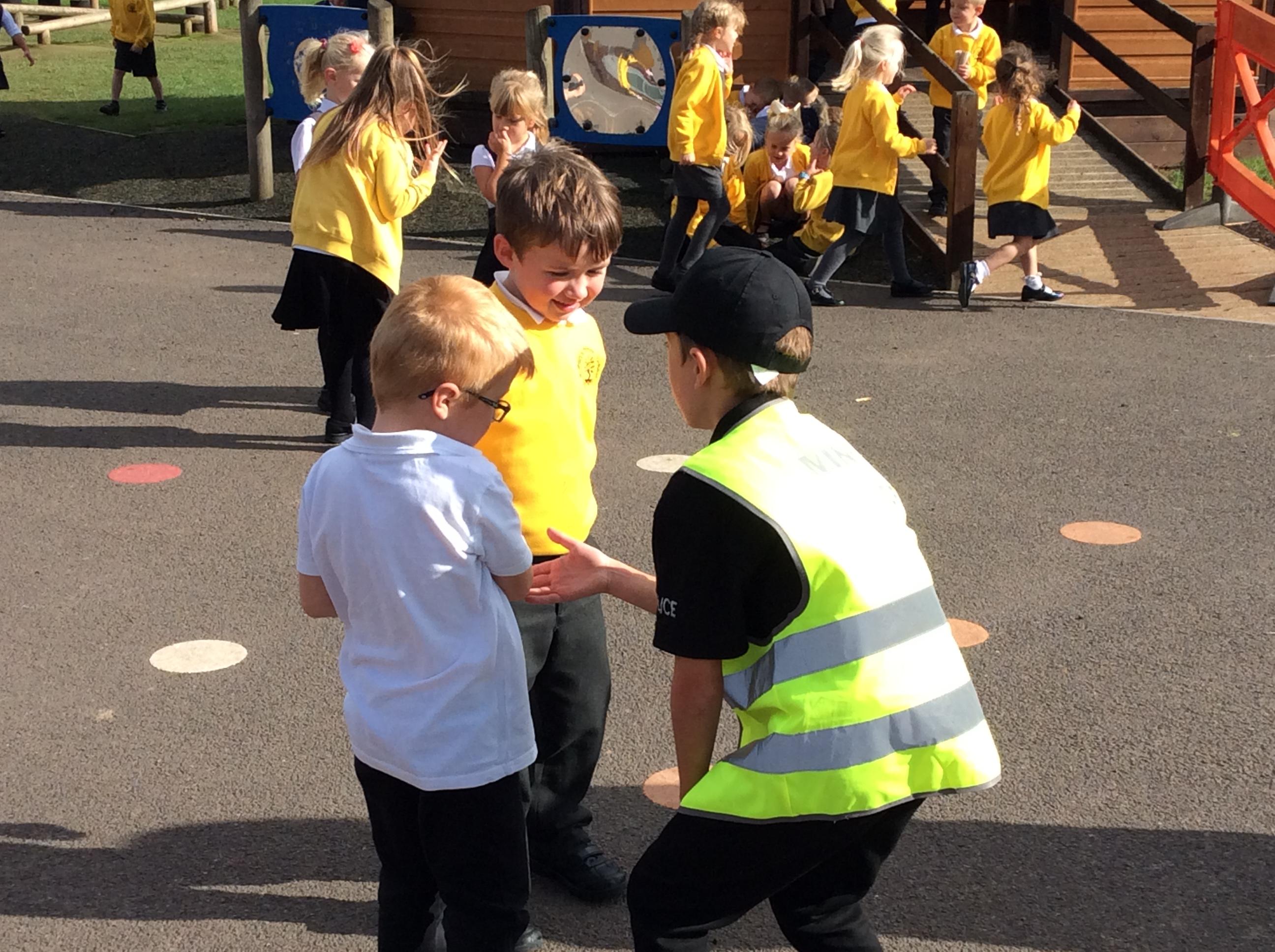 Part of the role of the Mini Police is to help other children around the school.